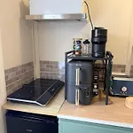 Gasten kunnen hun eigen maaltijden bereiden in een complete keuken van het vakantiehuis.